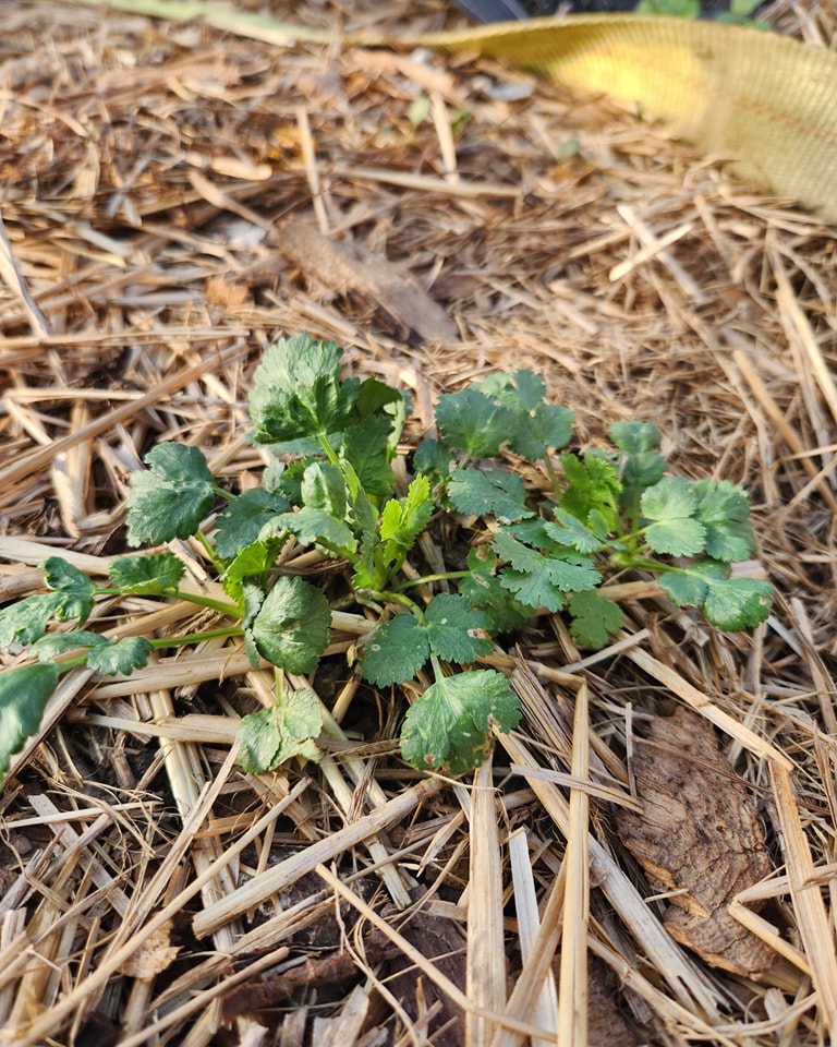 Contrary to common misconception, cilantro is a winter crop. With a little bit of shelter, cilantro will grow for you all the way through winter and spring until the warm weather in early summer pushes it to bolt. Seeds will germinate, even in cold weather. I had seeds come up last winter in the tunnel, which was unheated, during our arctic blast of sub-zero temps. Plant the seeds.