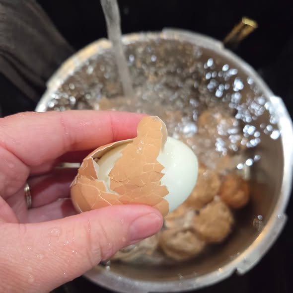 This is the method I use every time to peel farm fresh eggs, and it’s only failed me once. I’m convinced that one time was user error. 😅